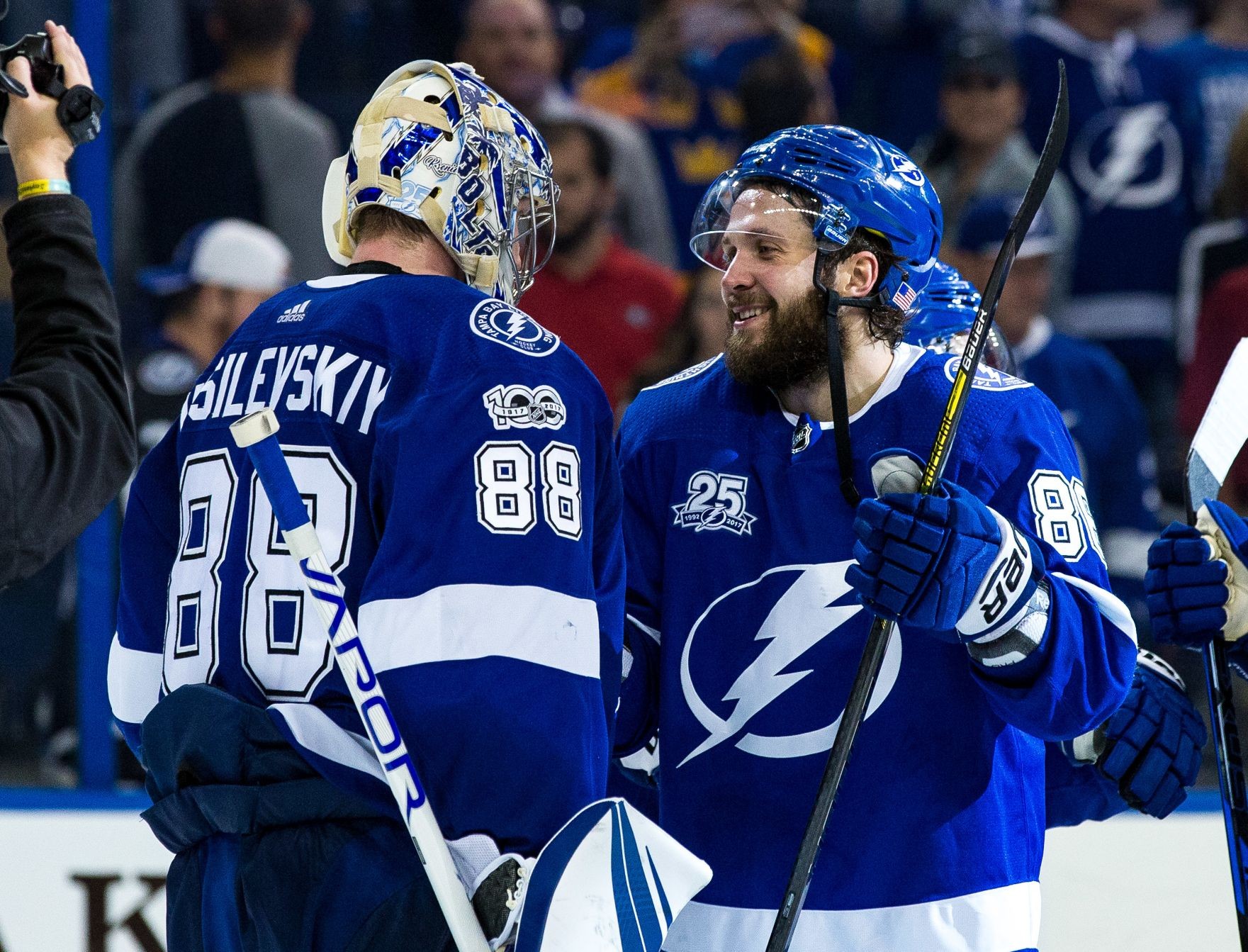 Когда вратарь Андрей Василевский находится в лучшей форме, то забить ему можно только в пустые ворота. Да и то не факт. В этом сезоне россиянин в третий раз подряд стал лучшим голкипером сезона по количеству побед — 35. Среди защитников по-прежнему высокий уровень держит Виктор Хедман, подтянулись Сергачев и Шаттенкирк, набравшие по 34 очка.